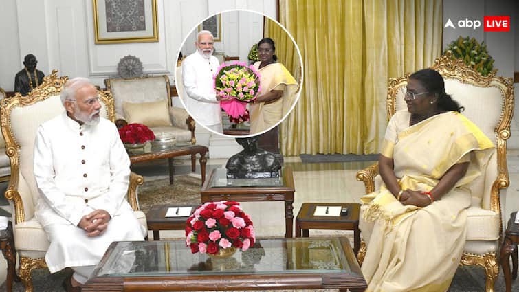 प्रधानमंत्री नरेंद्र मोदी सोमवार (20 अक्टूबर, 2025) को दिवाली के मौके पर राष्ट्रपति द्रौपदी मुर्मू से भेंट कर उन्हें दीपों के उत्सव दीपावली की हार्दिक बधाई दी. राष्ट्रपति कार्यालय ने राष्ट्रपति द्रौपदी मुर्मू और पीएम मोदी के बीच हुई इस मुलाकात के बाद सोशल मीडिया प्लेटफॉर्म एक्स पर उनकी तस्वीरें शेयर कीं. पोस्ट में लिखा Iगया कि प्रधानमंत्री नरेंद्र मोदी ने राष्ट्रपति द्रौपदी मुर्मू से मुलाकात की और उन्हें दिवाली की शुभकामनाएं दीं.